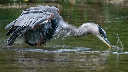 There are nine shots in this sequence (at 5 fps). I’m showing you #2 and #7. All but #5 were in focus, and considering I was using an off-center focus sensor here (I anticipated Frank taking off) I found that pretty exceptional for a low end camera. The one shot that’s out of focus went to the background because Frank’s neck did a deep U just about where the focus sensor was and I missed getting any part of it on the bird. But the interesting thing to me was that the D3400 and 70-300mm f/4.5-6.3G AF-P combo could flip so quickly from bird to background and back to bird. It only missed one shot in a 5 fps burst.