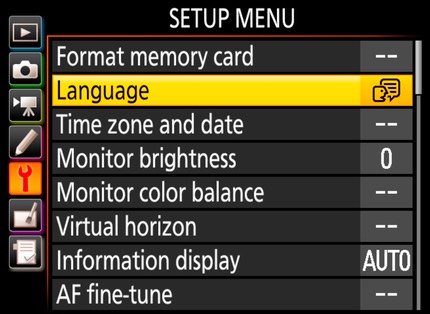 Seriously, Nikon? Language is the second most likely thing I want to change on the SETUP menu? Time/Date is third? This is pushing menu options that I use regularly off the first page of the menus (and the touchscreen doesn’t help me navigate the menus faster ;~).